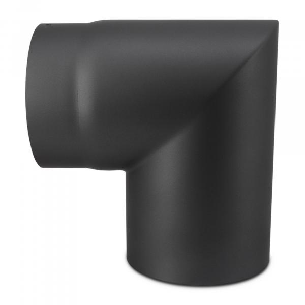 Der 90°-Bogen ohne Reinigungsverschluß dient zum hinteren oder oberen Anschluss einer Feuerstätte an den Schornstein. Durch die feste 90°-Abwinkelung eignet er sich ideal für einfache, geradlinige Rauchrohrführungen bei Kaminöfen, Holzöfen und vergleichbaren Feuerstätten.