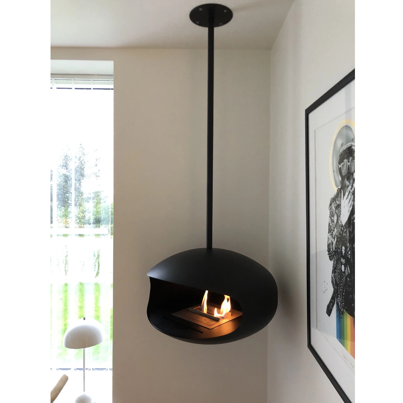 Dank des durchdachten Designs von Federico Otero lässt sich der Cocoon AERIS in wenigen Minuten vom Deckenmodell zu einem freistehenden Cocoon Pedestal Ethanol-Kamin umbauen. Hierfür wird lediglich die Deckenhalterung durch den Cocoon Pedestal Standfuß ersetzt.