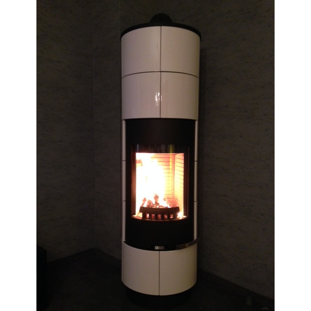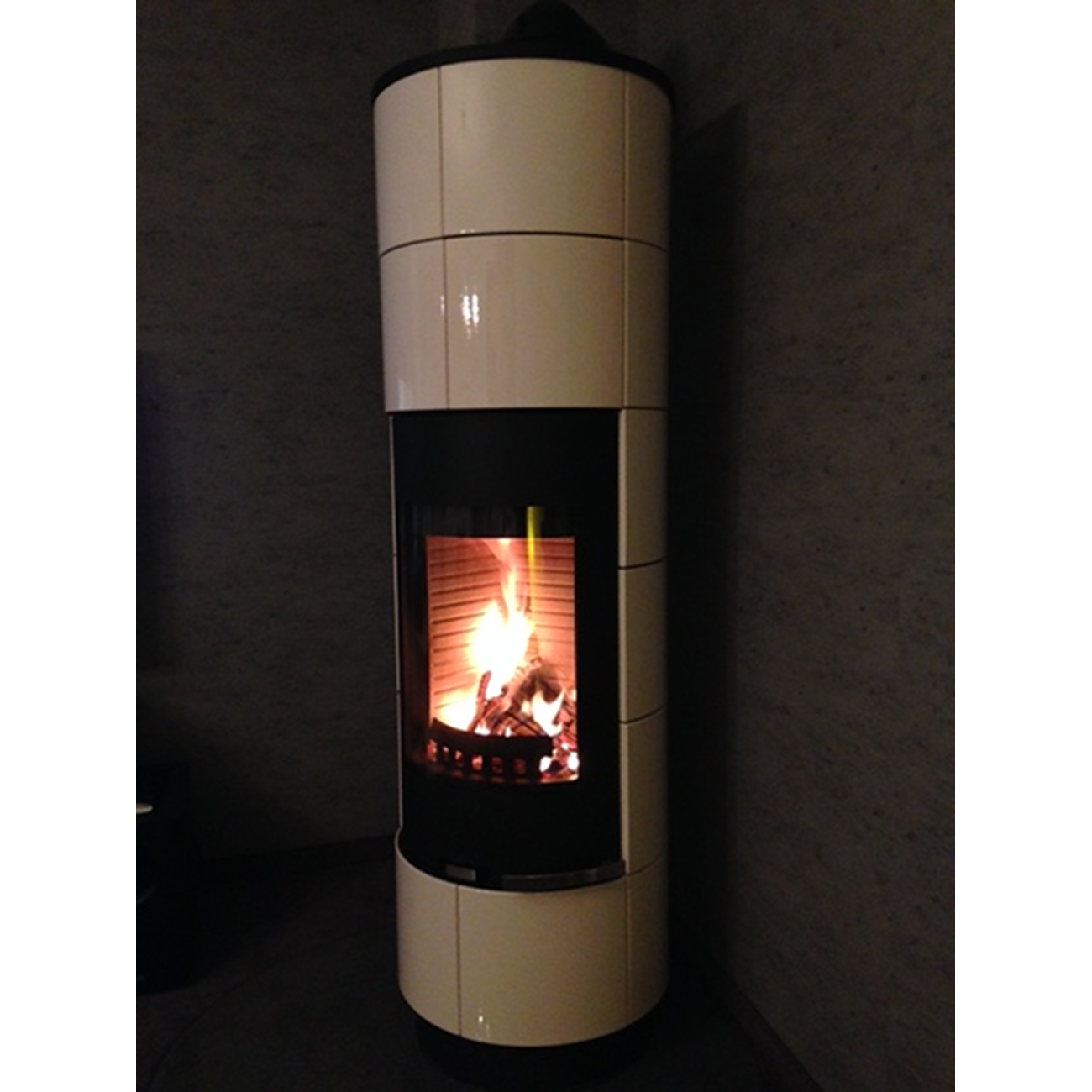 Der DELIA KERAMIK Kaminofen mit weißen Kacheln hat eine große gebogene Sichtscheibe und bringt, Dank der modernen Feuerung, Ihnen die Freude am Kaminfeuer ins Haus. Die Design Ganzglastür ist mit einer 2-Fach Verriegelung ausgestattet und der dezente Griff unterhalb der Brennkammer ist ein echtes Highlight, dieser wird abgerundet durch die Handgefertigten Kacheln. Der hochwertige Brennraum ist mit einer tiefem Gussmulde und Vermiculite ausgestattet. Vorteile: Kühler Griff - der Griff bleibt im Betrieb anfassbar ohne Handschuh Rahmenlose Designscheibe - Die Glasscheibe befindet sich vor dem Rahmen, dadurch wirkt die Glasscheibe größer und der Kamineinsatz eleganter Brennraumboden mit Gussmulde Handausgesuchte Weiße Kacheln Merkmale: Energieeffizienzklasse: A+; Nennwärmeleistung: 7 kW; Raumheizvermögen (abhängig von der Hausisolierung): 98 bis 180 m³; Korpus Farbe: Schwarz; Keramik Farbe: Weiß; Verwendete Materialien: Keramik; Form des Kamins: Rund; Scheibenform: Runde Scheibe; Maße des Kamins: Höhe: 173,8 cm; Breite: 53,8 cm; Tiefe: 46,0 cm; Gewicht: 179 kg; Scheibenmaß: Höhe: 49 cm; Breite: 41 cm; Türmaße: Höhe: 80 cm; Breite: 59 cm; Brennraummaße: Höhe: 46 cm; Breite: 35 cm; Tiefe: 30 cm; Rauchrohr-Anschlussdetails: Durchmesser: 150 mm; Position Rauchrohranschluss: Oben; Hinten (mit Extra Zubehör); Abstand vom Boden zur Mitte des hinteren Ausgangs: 137,0 cm oder 162,75 cm; Verbrennungsluft Typ: Externe Luftzufuhr / Raumluftunabhängiger Betrieb: Ja, optional anschließbar, mit der externen Luftzufuhr können Sie den Ofen mit Luft aus einem Nebenraum oder von außen beheizen. Dies wirkt sich positiv auf das Raumklima aus. Ermöglicht auch den Anschluss einer elektronischen Verbrennungsluft Regelung; Durchmesser Anschluss externe Luftzufuhr: 100 mm; Position Anschluss externe Luftzufuhr: Hinten; Unten / Boden / Unterhalb; Höhe Anschluss externe Luftzufuhr: 35,9 cm; DIBt Zulassung: Nein - jedoch teilweise möglich in Kombination mit externer Luftzufuhr und einen Sicherheitsschalter mit DIBT Zulassung; Brennstoffangaben: Zulässige Brennstoffe: Scheitholz; Holzbriketts; Braunkohlebriketts; Max. Scheitholzlänge: 30 cm; 35 cm (Hochkant); Max. Aufgabemenge: 2,3 kg; Ausstattung: Scheibenspülung: Ja, klare Sicht auf das Feuer - Luftstrom vor der Glasscheibe, dadurch wird die Verschmutzung der Scheibe minimiert; Wärmespeicherfähigkeit: Optional mit Speicherbetonsteinen auszustatten; Doppelt verriegelte Tür: Ja, die Tür wird an zwei Punkten verriegelt und liegt somit besonders dicht an den Ofenkorpus an; Ein-Regler-Steuerung: Ja, die gesamte Luftzufuhr des Ofens wird über einen Regler einfach gesteuert; Für Dauerbetrieb geeignet (24 Std. Betrieb): Ja; Holzfach: Nein; Ascherost und Aschekasten: Ja; Brennraum Auskleidung: Vermiculite; Brennraumboden: Gusseisen; Automatische Verbrennungsluftregelung: Nein; Luftströme: Primärluft; Sekundärluft; Rahmenlose Designscheibe: Die Glasscheibe befindet sich vor dem Rahmen, dadurch wirkt die Glasscheibe größer und der Kamin eleganter; Sicherheitsabstände zu brennbaren Materialien: Hinten: 20 cm; Seitlich: 45 cm; Vorne: 80 cm; Daten für den Schornsteinfeger: Bauart A1 - selbstschließende Feuerraumtür (mehrfache Belegung des Schornsteins): Ja; Bundes-Immissionsschutzverordnung (BImSchV): 1. Stufe erfüllt; 2. Stufe erfüllt; Art. 15a B-VG (Österreich): Ja; VKF-Schweiz: Erfüllt die Anforderung; Wirkungsgrad (Energieeffizienz): 80,4 %; Staub: 23 mg/Nm³ bez. auf 13% O²; Kohlenmonoxid (CO): 1000 mg/Nm³ bez. auf 13% O²; Abgastemperatur: 315°C; Abgasmassenstrom: 6,9 g/s; Mindestförderdruck: 12 Pa; CE Zeichen: Ja; Hinweis: Bitte sprechen Sie vor dem Kauf mit Ihrem zuständigen Schornsteinfegermeister. Lassen Sie Ihren Schornstein vor dem Einbau der Feuerstelle auf Verwendbarkeit prüfen. Beachten Sie außerdem die Bedienungsanleitungen und die Sicherheitsabstände.; Lieferdetails: Lieferkosten: Kostenlos Bordsteinkante - Deutschlandweit, außer Inseln; Lieferinfo: Die Lieferung erfolgt per Spedition, Bordsteinkante; Bitte beachten Sie, dass es bei Kaminöfen die mit Keramischen Materialien / Natursteinen verkleidet sind, es immer Abweichungen von den Bildmaterialien und von Modell zu Modell mit Farbunterschieden zu rechnen ist.; Dekorationsartikel und Rauchrohre gehören nicht zum Leistungsumfang; Lieferung zum Aufstellort mit einem 2-Mann-Handling Service: Möglich gegen Aufpreis - sprechen Sie uns hierzu gerne an; Info zum Rauchrohranschluss am Schornstein: Der Kaminofen kann entweder von oben oder von hinten an den Schornstein mit Rauchrohren angeschlossen werden. Für den Anschluss hinten (Rückwärtiger Anschluss) benötigen Sie ein spezielles Rauchrohrknie dieses wird bei der Auswahl "Position Rauchrohranschluss" mitgeliefert. Für den Anschluss oben benötigen Sie zusätzlich ein normales 50 cm Verlängerungs Rauchrohr, was im Ofen auf dem Stutzen oberhalb der Brennkammer gesetzt wird, dieses verbleibt komplett in dem Kaminofen. Für die Berechnung der weiteren erforderlichen Rauchrohrlängen rechnen Sie ab Oberkante Kaminofen.