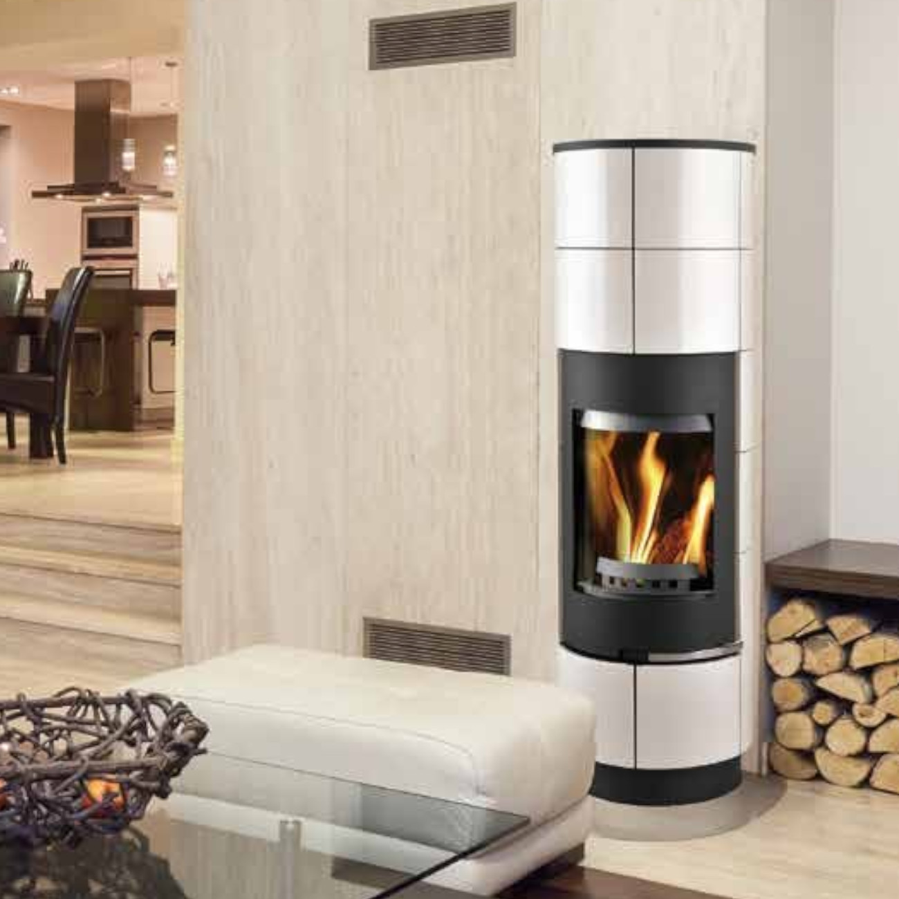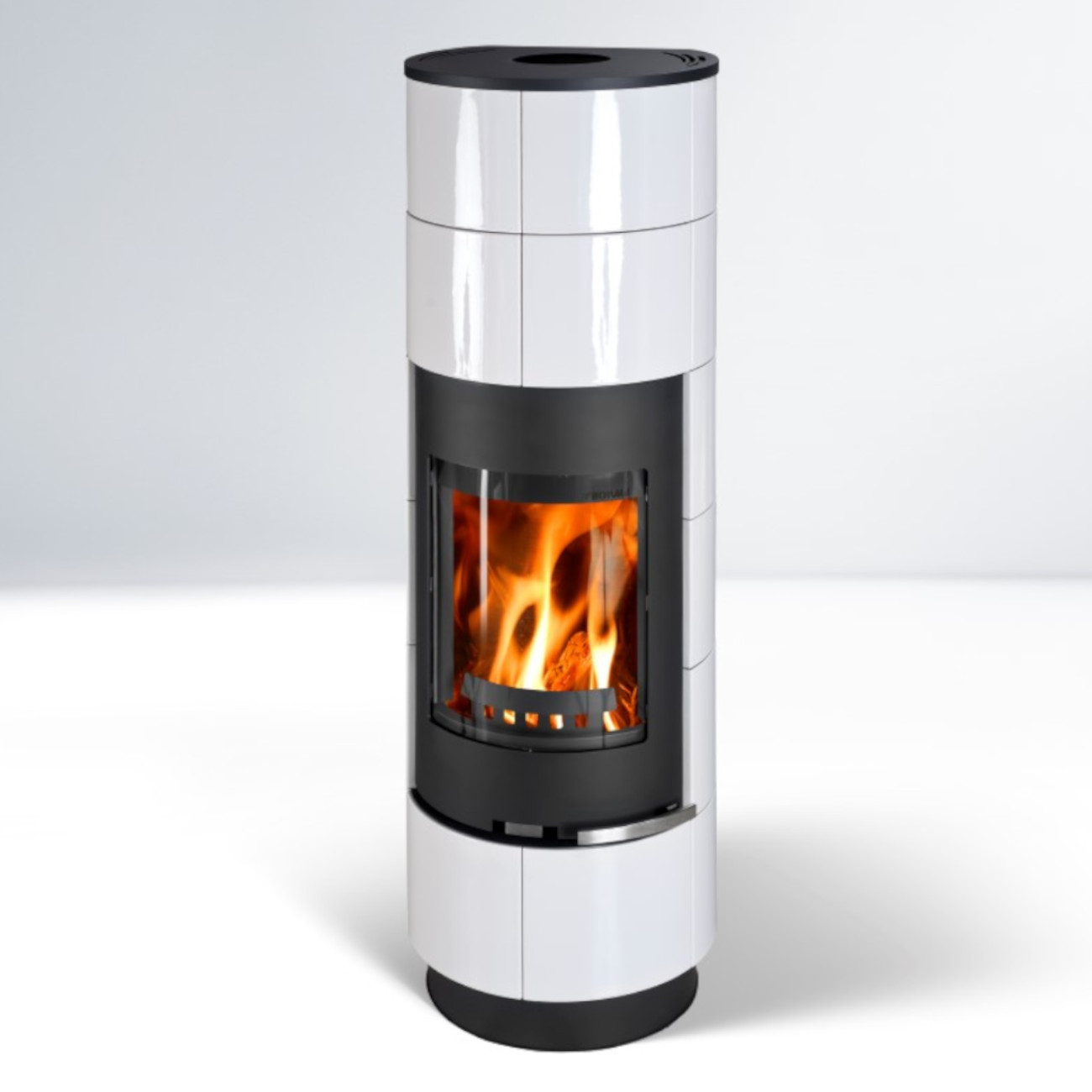 Der Delia Keramik Speicher-Kaminofen Weiß ist ein majestätischer Kachel-Kaminofen mit optionaler zusätzlicher Wärmespeicherung durch Speichersteine (bis zu 72 kg). Mit seiner 7 kW Nennwärmeleistung, der großen runden Sichtscheibe und einer eleganten Keramikverkleidung in Weiß bringt er zeitloses Design und kraftvolle Wärme in Ihr Zuhause. Die Design-Tür mit stabilem Stahlrahmen, bei der die Glasscheibe innen anliegt, sowie der dezente Griff rechts unterhalb der Brennkammer, der auch während des Betriebs kühl bleibt, machen diesen Kaminofen zum Blickfang in jedem modernen Wohnraum.