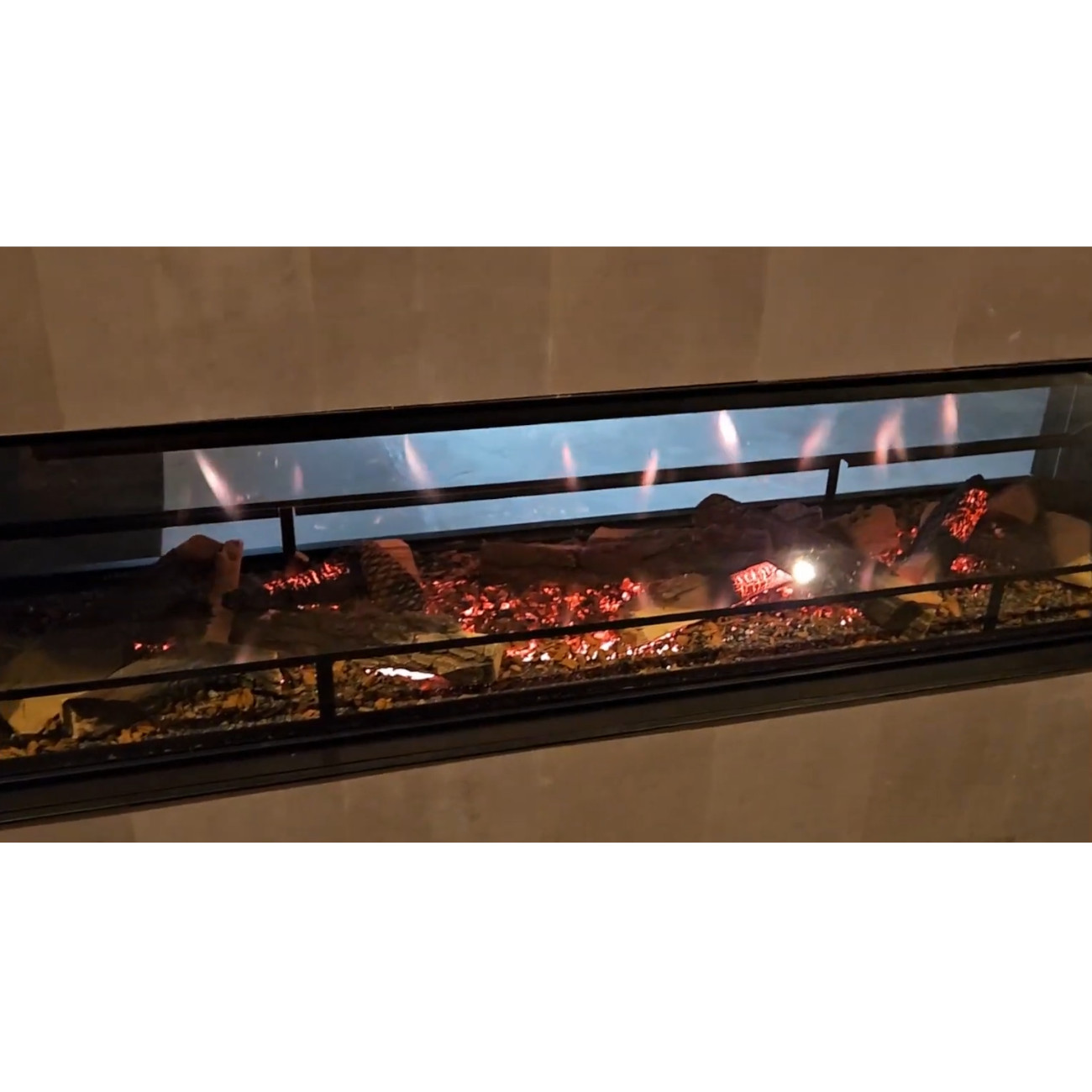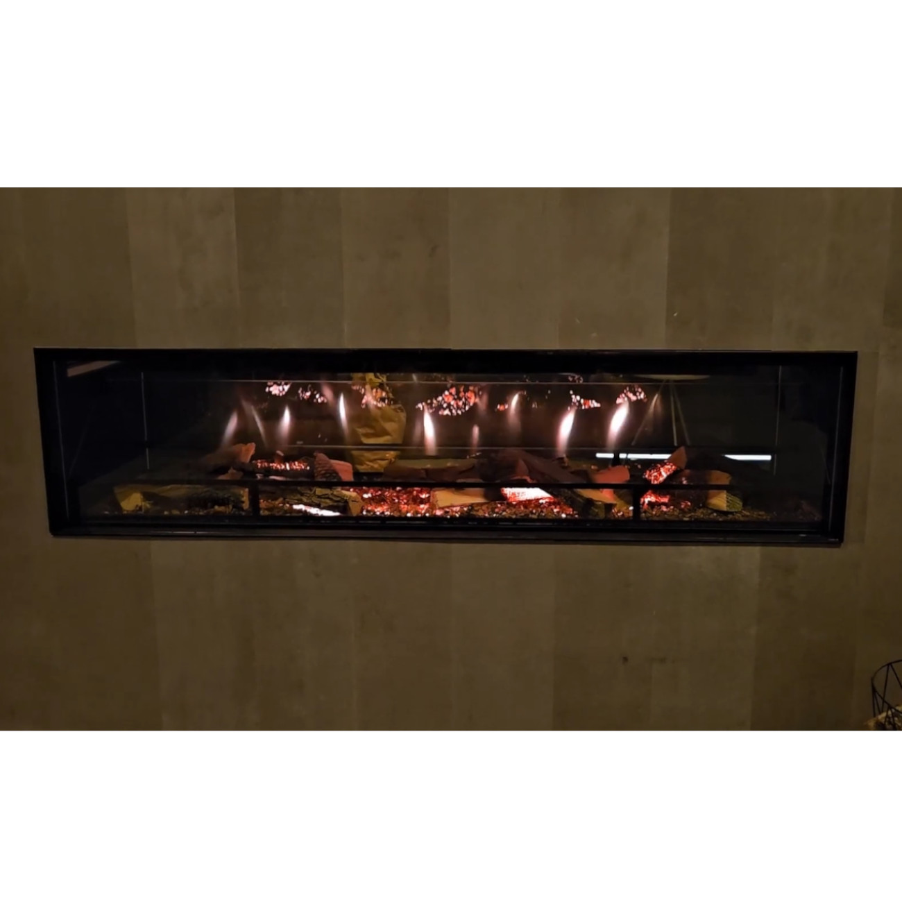 Dank der flexiblen Einbaubedingungen – kein Schornstein, keine Abluft, keine Brandgefahr – ist der Einbau nahezu überall möglich. Der Kamin besitzt einen integrierten 4-seitigen Blendrahmen (1,6 cm) auf beiden Seiten, der die Montage deutlich vereinfacht und eine elegante, flächenbündige Optik schafft.
