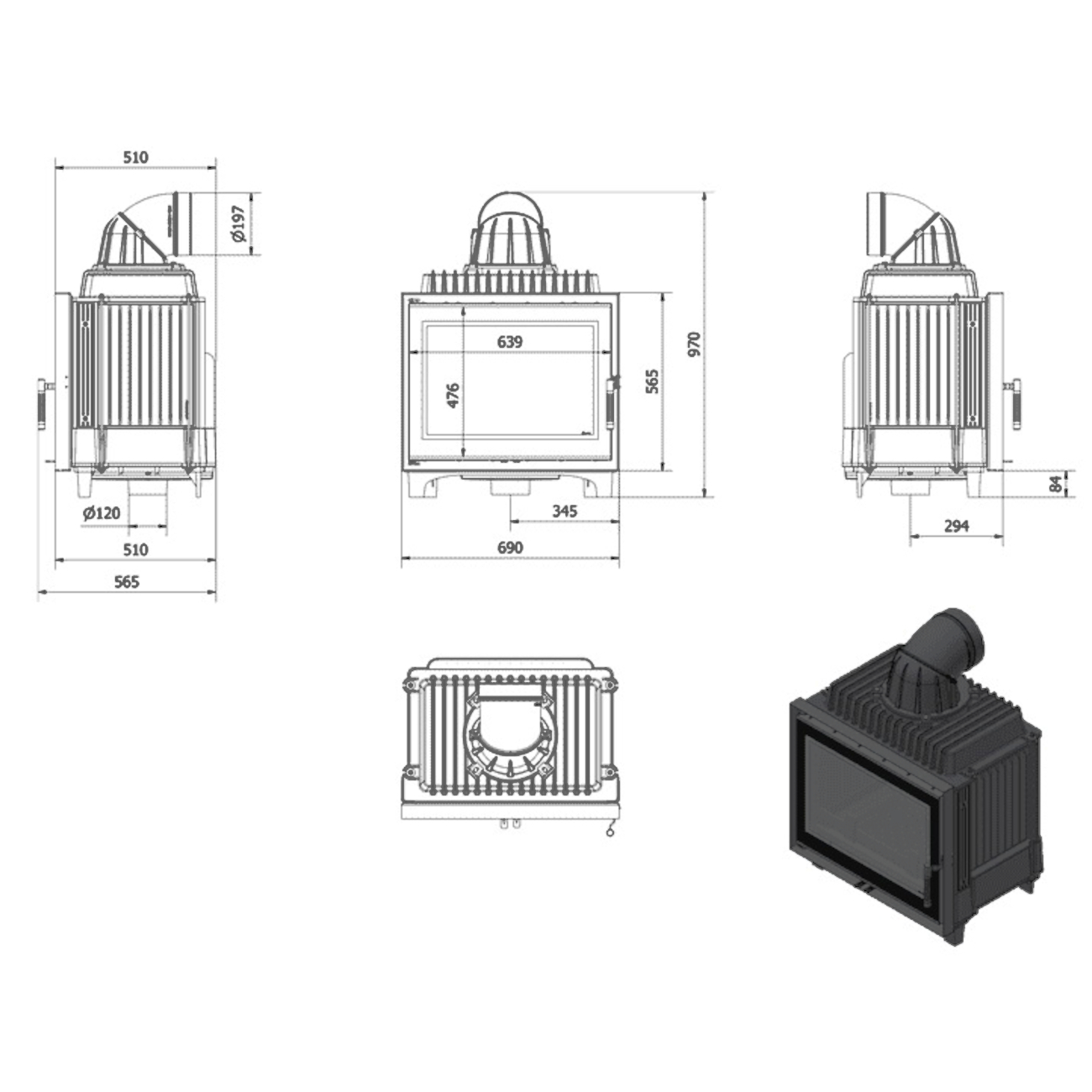 Modell: Kratki Franek 12 Warmluft Gusseisener Kamineinsatz