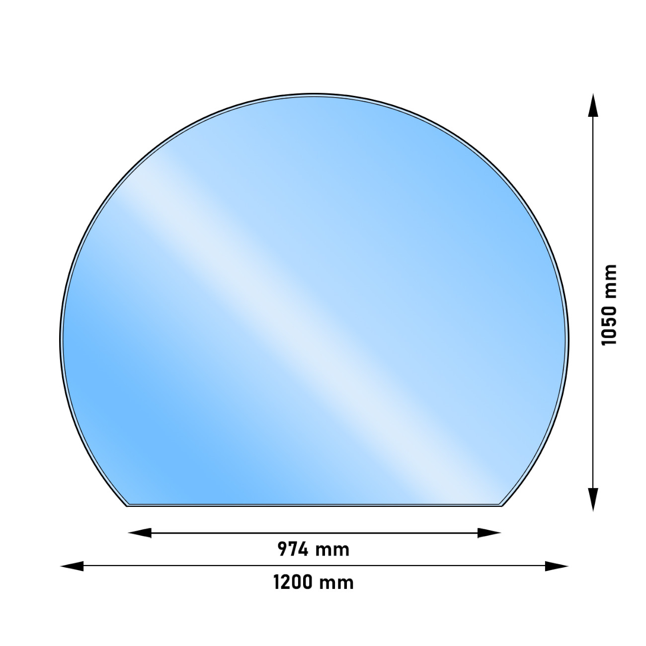Glasbodenplatte Kreisabschnitt 1200 × 1050 mm – Optimal für runde oder ovale Kaminöfen