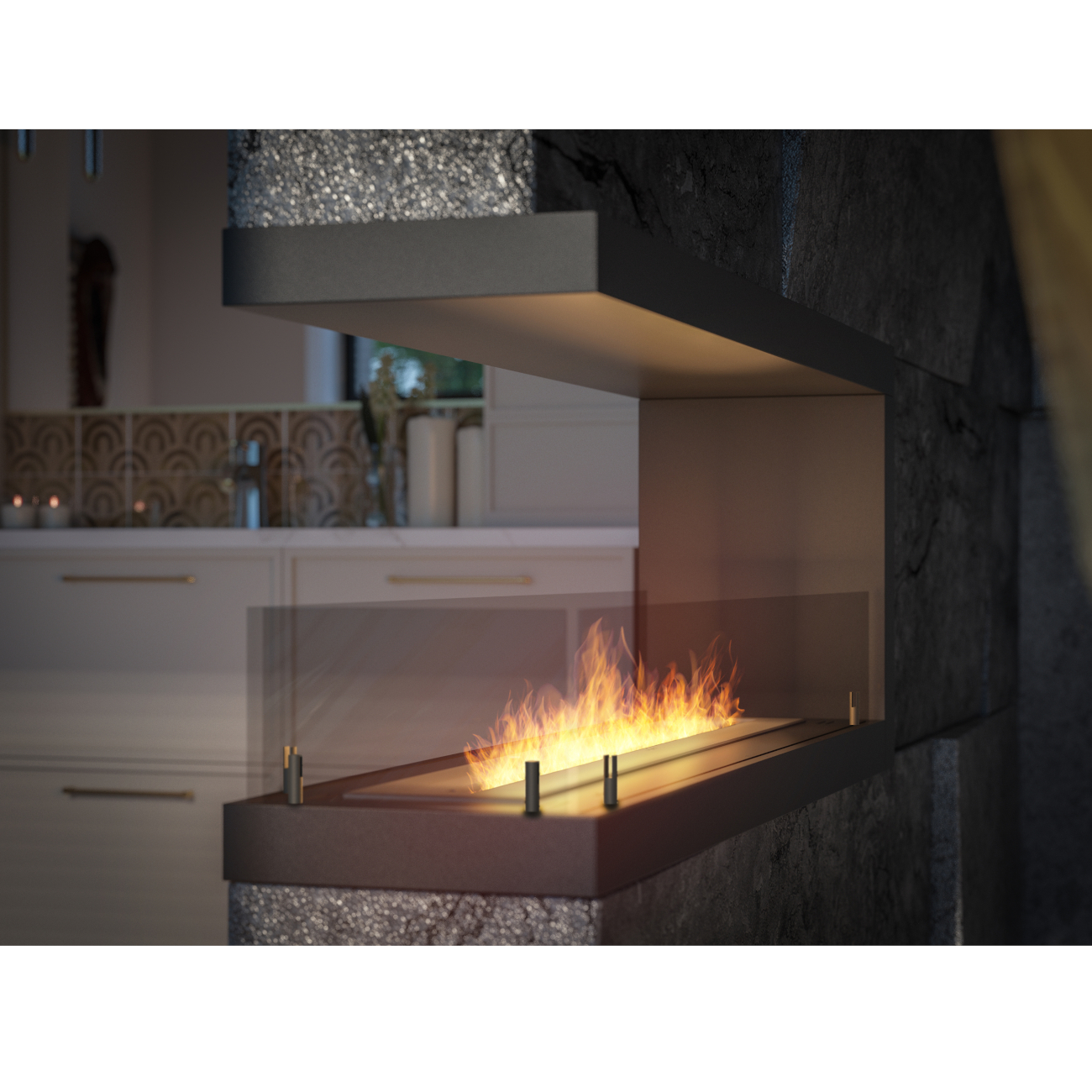 Der INSIDE U 1200 ist ein exklusiver Panorama-Ethanolkamin, der sich ideal für den Einbau in eine vorbereitete Nische oder Aussparung eignet. Sein modernes, offenes Design erlaubt eine atemberaubende Feueransicht von drei Seiten, wodurch er sich perfekt als stilvoller Raumtrenner zwischen verschiedenen Wohnbereichen eignet.