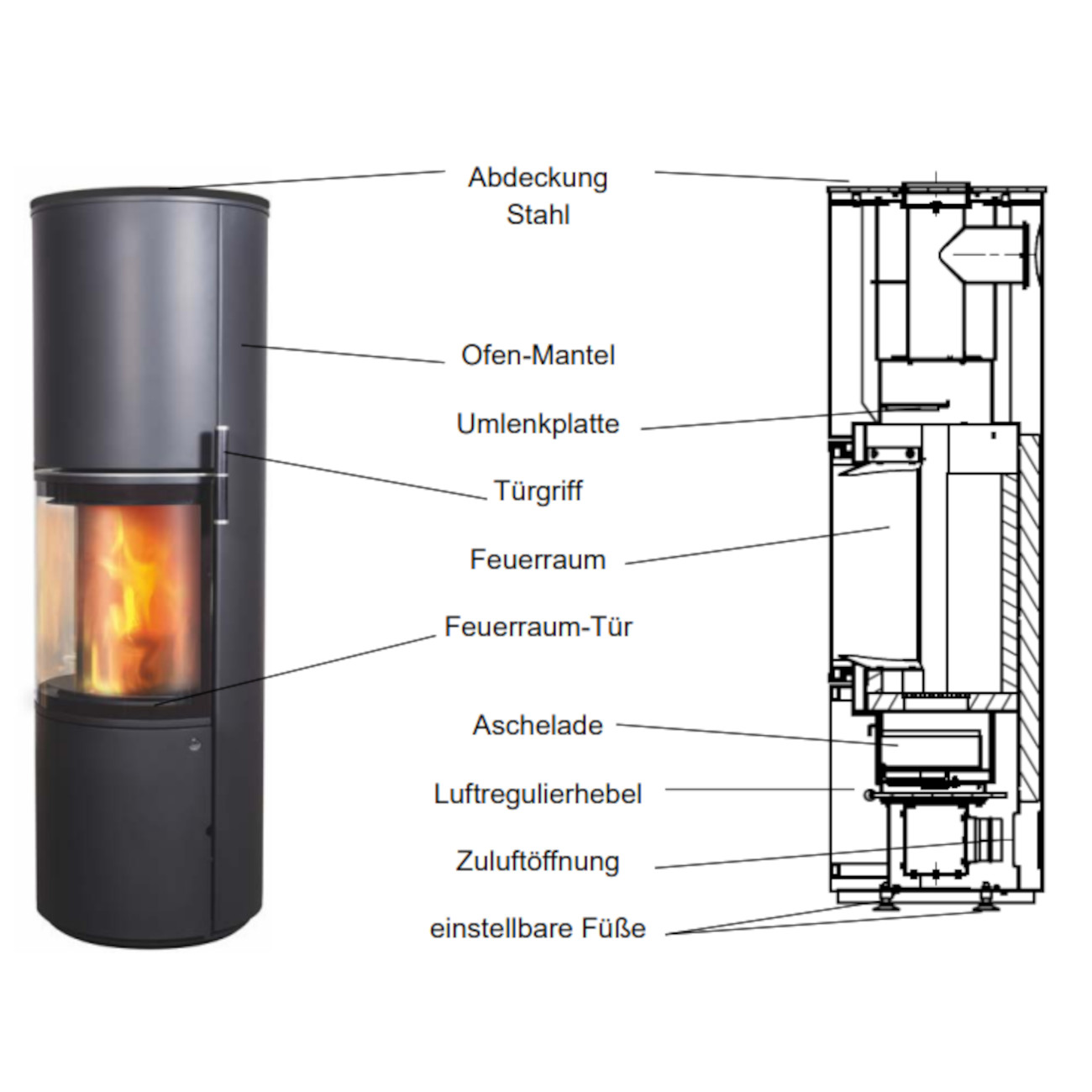 - Wärmespeicherfähigkeit: Ja, Optional erwerbbar; Dank der Powerstones mit 80 kg Gewicht können Sie die Wärme bis zu 6 Stunden speichern, die nach dem erlischen des Feuers wieder abgegeben wird.