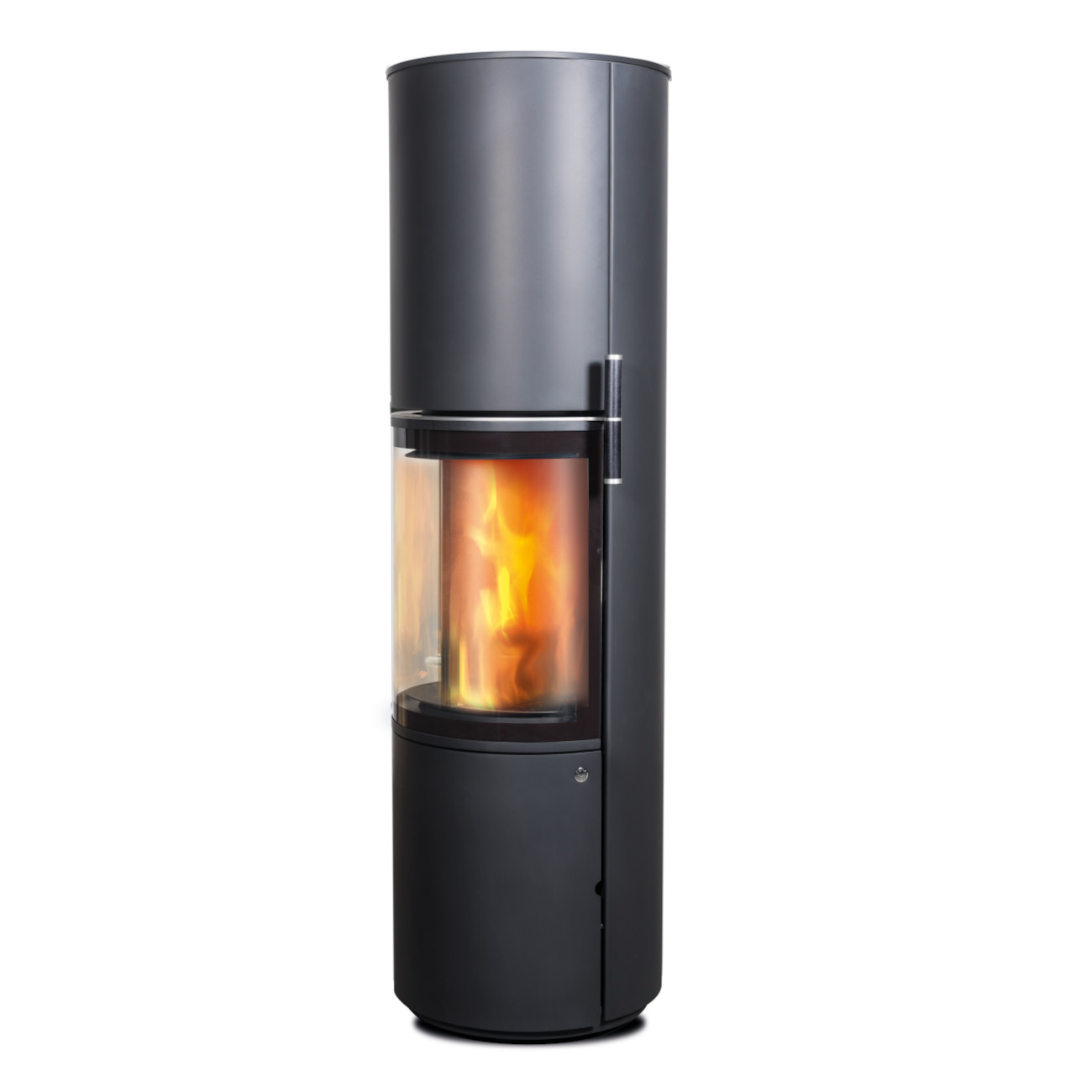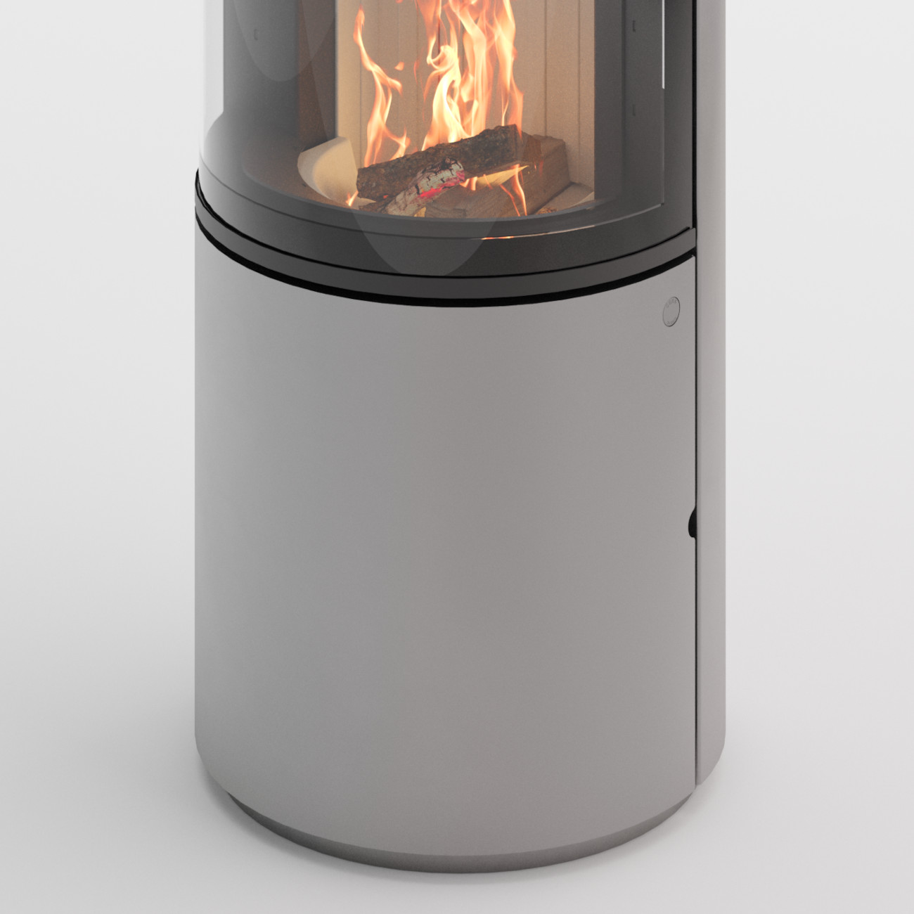 Das besondere Merkmal des VOLARE ist seine großzügig gewölbte 180°-Glasscheibe, die den Blick auf das Flammenspiel nahezu vollständig freigibt. Dadurch entsteht eine außergewöhnliche Verbindung zwischen Ofenform und Feuerraum – elegant, modern und kompromisslos transparent. Der Ofen wirkt aus jeder Perspektive wie ein skulpturales Designobjekt im Raum.