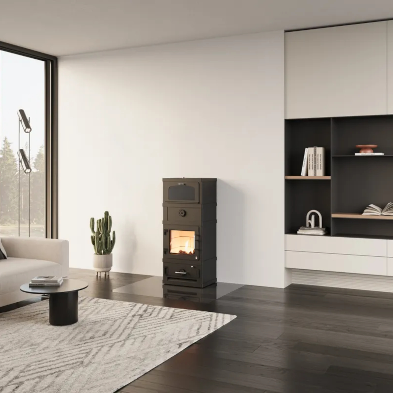 Der Lotus 2060 Kaminofen besticht durch seine erstklassige Verarbeitungsqualität und ein edles Design, das durch Stahlbänder und die Möglichkeit zur individuellen Anpassung hervorgehoben wird. Mit flexiblen Kombinationsmöglichkeiten – vom praktischen Holzfach bis hin zum Backfach – können Sie den Kaminofen ganz nach Ihren Bedürfnissen gestalten. Das Highlight ist das integrierte Warmhaltefach, das eine praktische Lösung bietet, um Speisen oder Getränke über längere Zeit warm zu halten – eine ideale Funktion für gemütliche Abende oder lange Wintertage.