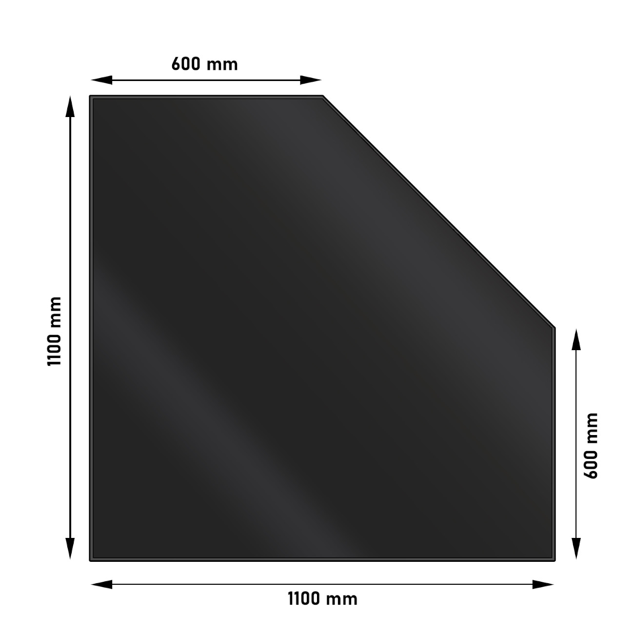 Die Metallbodenplatte in Fünfeck-Form bietet zuverlässigen Schutz für Ihren Boden im Bereich des Kaminofens. Mit der Größe von 1100 x 1100 mm eignet sie sich hervorragend für die platzsparende Montage in Raumecken. Durch ihre kantige Form ist sie die optimale Wahl für eckige Kaminöfen, Öfen mit Eckscheibe sowie für die klassische Eckaufstellung.