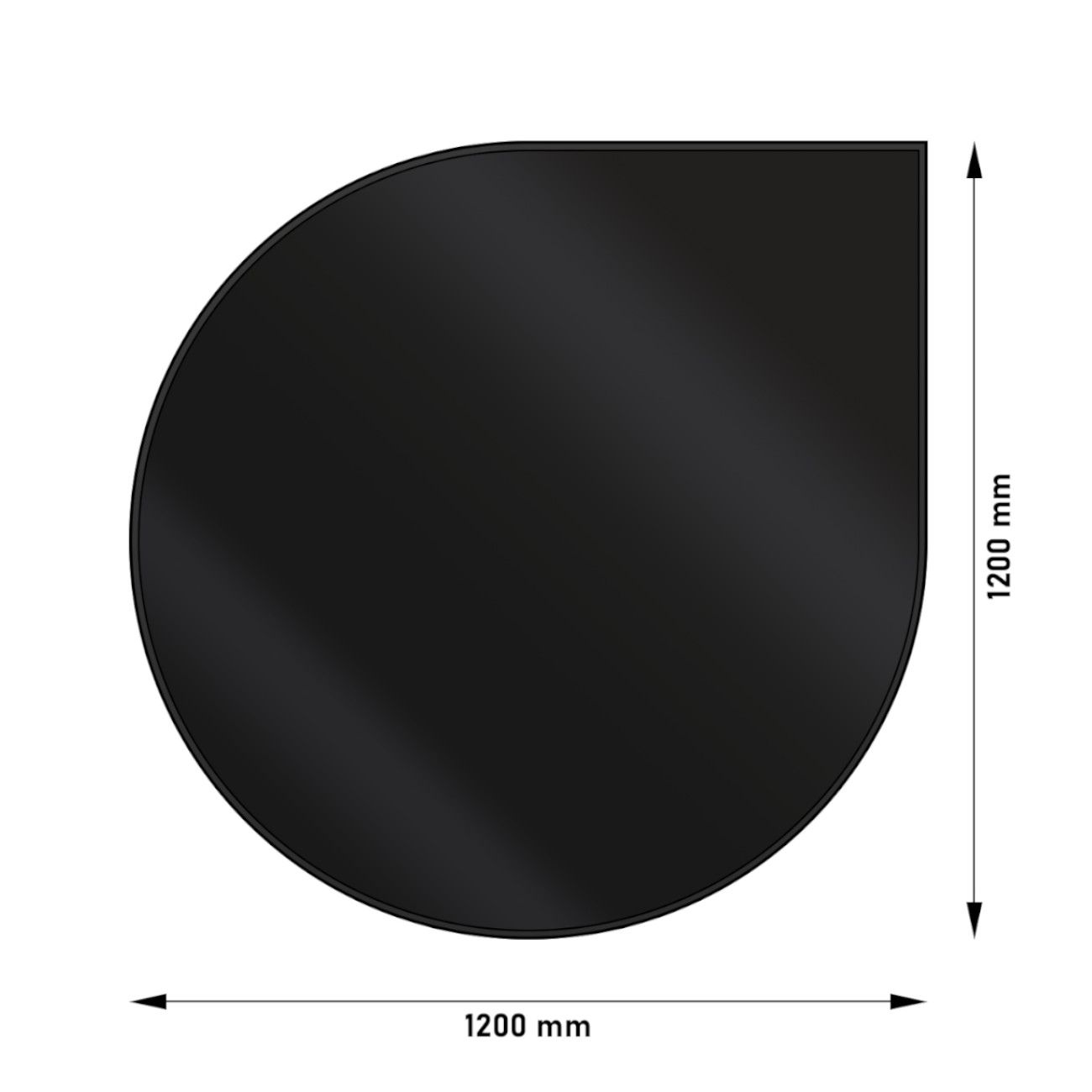 Die Metallbodenplatte in Tropfenform schützt zuverlässig den Boden im Bereich Ihres Kaminofens und überzeugt durch ihre flexible Einsatzfähigkeit. Mit den Maßen 1200 x 1200 mm eignet sie sich optimal für Eckaufstellungen, ovale oder eckige Kaminöfen und passt harmonisch in jeden Wohnbereich.