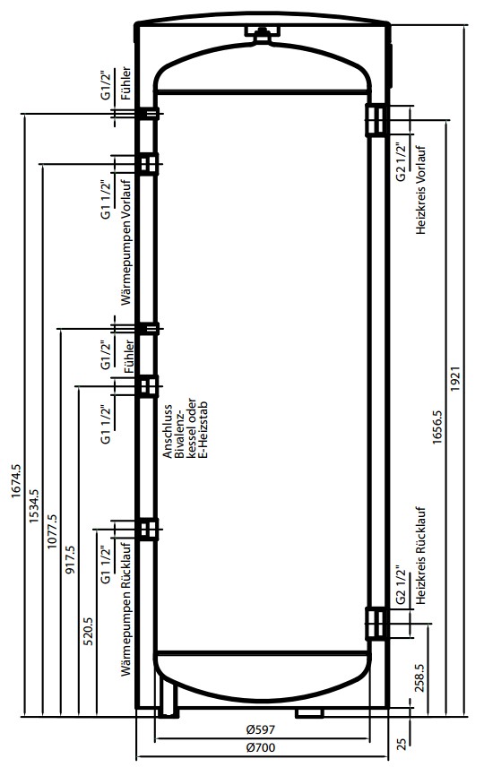 - Wärmepumpe-Vorlauf/Rücklauf: G 2 1/2