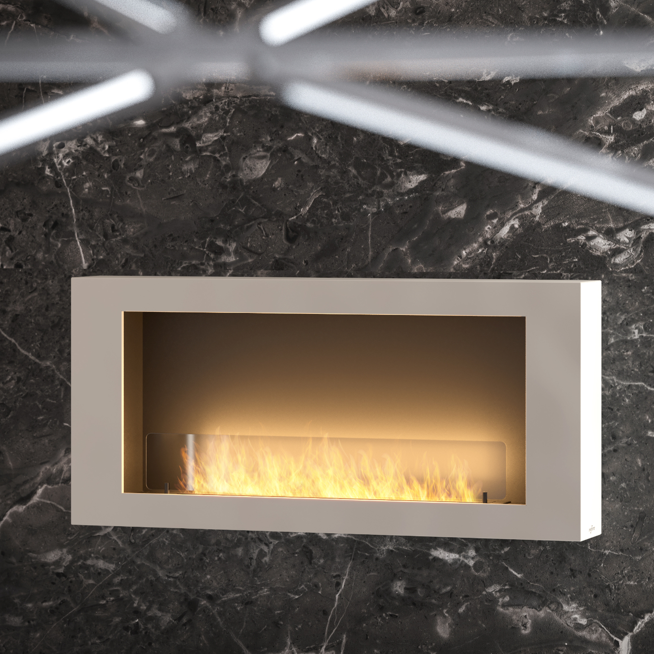 InFire INSIDE 900 – Eleganter Ethanolkamin für Wand & NischeDer InFire INSIDE 900 ist ein moderner, universeller Ethanolkamin, der entweder an der Wand montiert oder in eine vorgesehene Nische bündig eingelassen werden kann. Mit seinem eleganten Design und der hochwertigen Verarbeitung sorgt er für eine angenehme Wärmeübertragung und eine stilvolle Atmosphäre in Ihrem Wohnraum.Dank seines integrierten Entlüftungssystems wird verhindert, dass sich Druck unter dem Brenner aufbaut – für maximale Sicherheit. Eine getönte Schutzscheibe (4 mm Sicherheitsglas) stabilisiert die Flamme und sorgt für zusätzlichen Schutz.Warum ein Ethanolkamin?✔ Kein Schornstein oder Rauchabzug erforderlich – Ideal für Wohnungen & Häuser ohne Schornstein✔ Saubere Verbrennung – Keine Ruß-, Rauch- oder Abgasentwicklung✔ Geruchsneutral & umweltfreundlich – Verbrennt Bioethanol rückstandsfrei✔ Perfekt für Innen- & Außenbereiche – Flexibel einsetzbar Sicherheitsmerkmale🔥 Integrierte Isolierung – Schützt die Einbauwand und sorgt für zusätzliche Sicherheit🔥 Innovatives Entlüftungssystem – Verhindert Druckaufbau unter dem Brenner bei einem Kraftstoffüberlauf🔥 Zusätzlicher Sicherheitstank – Fängt überschüssiges Bioethanol auf und verhindert ungewolltes Austreten🔥 Keramikfasereinlage – Optimiert die Verbrennung und verlängert die Brenndauer🔥 Einstellbare Flammenhöhe – Präzise Flammenregulierung durch die längliche Regulierleiste mit zwei Griffen🔥 Sicheres Löschen – Durch eine verschiebbare schwarze Abdeckleiste kann das Feuer einfach und sicher gelöscht werden🔥 Schutzglas – Getöntes Sicherheitsglas auf schwarzen Halterungen für zusätzlichen SchutzTechnische Details:Hersteller: InFire – Made in EUModell: INSIDE 900 Einbau-EthanolkaminMaße: Höhe 50 cm x Breite 90 cm x Tiefe 16 cmGewicht: 23 kgBrennergröße: 50 cmBrennerinhalt: 1 Liter BioethanolBrenndauer: 2–3 Stunden (abhängig von Flammengröße)Wärmeleistung: ca. 3,5 kWMaterial: Weiß lackierter Stahl, getöntes Sicherheitsglas (4 mm)TÜV-geprüft mit AuslaufschutzLieferumfang:✅ InFire INSIDE 900 Ethanolkamin✅ Sicherheitsglas (4 mm, getönt)✅ 1 Liter Bioethanol gratisGenießen Sie mit dem InFire INSIDE 900 eine stilvolle & umweltfreundliche Feuerquelle – ganz ohne Schornstein oder Genehmigung. Jetzt bestellen & wohlige Wärme genießen! 🔥