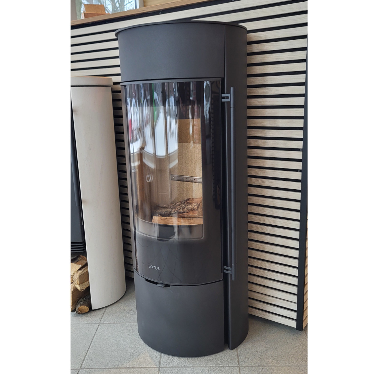 Stark bei Design und Funktion Der Prestige Magic 40 Limestone ist ein neuer, eleganter Kaminofen aus der äußerst beliebten Serie Lotus Prestige. Greifen Sie auf allseits bewährte Technologie und Funktionalität zurück. Elegantes Magic-Glas an der Außenseite der robusten Gusseisentür sorgt für das ultimative Finish. Mit seiner eleganten Form, die für eine elegante Optik sorgt, passt der Kaminofen hervorragend an die Wand oder in eine Ecke. Eine Holznische rundet den Look stilvoll ab.Der Kaminofen ist mit drei Griffvarianten erhältlich. So können Sie genau das Design auswählen, das perfekt in Ihr Zuhause passt. Sie haben folgende Optionen: Classic – ein Griff aus schwarz lackiertem Stahl, der über die gesamte Türhöhe geht. Modern – ein Griff mit einer Vorderseite aus schwarz lackiertem Stahl und einer Rückseite mit Soft Touch und schließlich Shape – ein Griff, der komplett mit Soft Touch-Technologie ausgestattet ist. Bei den Shape- und Modern-Ausführungen können Sie selbst bestimmen, ob die Griffe oben oder unten an Ihrem holzbefeuerten Kaminofen angebracht sein sollen. Für erhöhten Komfort und leichteres Anzünden ist der Prestige Magic 40 mit dem einzigartigen Soft-Close-System von Lotus ausgestattet.Limestone ist ein weißer Naturstein, der aus einem Gemisch von Sand, Koralle und 10 % Kreide besteht. Hieraus entsteht ein dekoratives Gestein mit wunderschönen Grautönen. Jeder von der Natur geschaffene Stein ist ein Unikat. Struktur- und Oberflächenvariationen sorgen dafür, dass Sie mit Ihrem neuen Kaminofen ein wirklich einzigartiges Möbelstück in Ihr Zuhause bringen. Besonderheiten auf einem Blick Magic-Glas mit massiver Gusseisentür Limestone - Kalksteinverkleidung 4 verschiedene Griffvarianten zur Wahl Anschluss für die externe Luftzufuhr (80 mm) Anschlussmöglichkeit oben und hinten (wählbar) Passgenaue Glas Vorlegeplatte "normal" und als Magic Schwarz erhältlich Lotus – „Turbo-Clean“- Scheibenreinigung Höhenverstellbare Füße Quality first Prinzip - Verbrennung (Hochtemperaturofen, Saubere Verbrennung, Brennholz wird optimal genutzt, CO2 neutral) | Haltbarkeit (Dicker Walzstahl, Kräftige Türen, 5 mm Glas in den Türen) | Design (Zweckmäßig, Benutzerfreundlich, Formvollendet, Dänisch)  Merkmale: Energieeffizienzklasse: A+; Nennwärmeleistung: 5 kW; Wärmeleistungsbereich: 3 bis 7 kW; Raumheizvermögen (abhängig von der Hausisolierung): 30 bis 120 m²; Korpus Farbe: Schwarz; Verwendete Materialien: Stahl; Gusseisen; Limestone Kalksteinverkleidung Form des Kamins: Oval; Rund; Scheibenform: Runde Scheibe; Rahmenlose Vollglanztür; Maße des Kamins: Höhe: 124,9 cm; Breite: 48,2 cm; Tiefe: 38,9 cm; Gewicht: 158 kg; Maße der Glasscheibe (Gesamtglasscheibe):Höhe: 72,3 cmBreite: 55 cmMaße der Glasscheibe (Sichtbares Maß):Höhe: 47 cmBreite: 40 cmRauchrohr-Anschlussdetails: Durchmesser: 150 mm; Position Rauchrohranschluss: Oben; Hinten; Abstand vom Boden zur Mitte des hinteren Ausgangs: 95,3 cm; Abstand von Mitte des Rauchstutzens bis zur Hinterkante des Ofens: 15,0 cm; Verbrennungsluft Typ: Externe Luftzufuhr / Raumluftunabhängiger Betrieb: Ja, optional anschließbar, mit der Externen Luftzufuhr können Sie den Ofen mit Luft aus einem Nebenraum oder von außen beheizen. Dies wirkt sich positiv auf das Raumklima aus. Ermöglicht auch den Anschluss einer elektronischen Verbrennungsluft Regelung; Durchmesser Anschluss externe Luftzufuhr: 80 mm; Position Anschluss externe Luftzufuhr: Hinten; Unten / Boden / Unterhalb; Höhe Anschluss externe Luftzufuhr: 10,1 cm; DIBt Zulassung: Nein Brennstoffangaben: Zulässige Brennstoffe: Scheitholz; Holzbriketts; Max. Scheitholzlänge: 35 cm; Max. Aufgabemenge: 2 kg; Stündlicher Verbrauch: 1,7 kg/h; Ausstattung: Scheibenspülung: Ja, klare Sicht auf das Feuer - Luftstrom vor der Glasscheibe, dadurch wird die Verschmutzung der Scheibe minimiert; Wärmespeicherfähigkeit: Nein; Ein-Regler-Steuerung: Ja, die gesamte Luftzufuhr des Ofens wird über einen Regler einfach gesteuert; Für Dauerbetrieb geeignet (24 Std. Betrieb): Ja; Holzfach: Ja; Mit Tür; Ascherost und Aschekasten: Ja; Brennraum Auskleidung: Vermiculite; Luftströme: Primärluft; Sekundärluft; Tertiärluft; Rahmenlose Designscheibe: Die Glasscheibe befindet sich vor dem Rahmen, dadurch wirkt die Glasscheibe größer und der Kamin eleganter; Sicherheitsabstände zu brennbaren Materialien: Hinten: 15 cm; Seitlich: 25 cm; Vorne: 80 cm; Daten für den Schornsteinfeger: Bauart A1 - selbstschließende Feuerraumtür (mehrfache Belegung des Schornsteins): Ja; Bundes-Immissionsschutzverordnung (BImSchV): 1. Stufe erfüllt; 2. Stufe erfüllt; Art. 15a B-VG (Österreich): Ja; VKF-Schweiz: Ja; Wirkungsgrad (Energieeffizienz): 80,5%; Staub: 19 mg/Nm³ bez. auf 13% O²; Kohlenmonoxid (CO): 875 mg/Nm³ bez. auf 13% O²; Abgastemperatur: 290°C; Abgasmassenstrom: 4,3 g/s; Mindestförderdruck: 12 Pa; CE Zeichen: Ja; Hinweis: Bitte sprechen Sie vor dem Kauf mit Ihrem zuständigen Schornsteinfegermeister. Lassen Sie Ihren Schornstein vor dem Einbau der Feuerstelle auf Verwendbarkeit prüfen. Beachten Sie außerdem die Bedienungsanleitungen und die Sicherheitsabstände.; Lieferdetails: Lieferkosten: Kostenlos Bordsteinkante - Deutschlandweit, außer Inseln; Lieferinfo: Die Lieferung erfolgt per Spedition, Bordsteinkante; Bitte beachten Sie, dass es bei Kaminöfen die mit Keramischen Materialien / Natursteinen verkleidet sind, es immer Abweichungen von den Bildmaterialien und von Modell zu Modell mit Farbunterschieden zu rechnen ist.; Dekorationsartikel und Rauchrohre gehören nicht zum Leistungsumfang; Lieferung zum Aufstellort mit einem 2-Mann-Handling Service: Möglich gegen Aufpreis - sprechen Sie uns hierzu gerne an; Optionales Zubehör: 4 verschiedene Griffvarianten Passgenaue Glas Vorlegeplatte (Achtung: Vorlegeplatte nur in Verbindung mit der Montage der Stellfüße) Passgenaue Glas Vorlegeplatte Magic - Mit Schutzfolie überzogene schwarz lackierte Gl