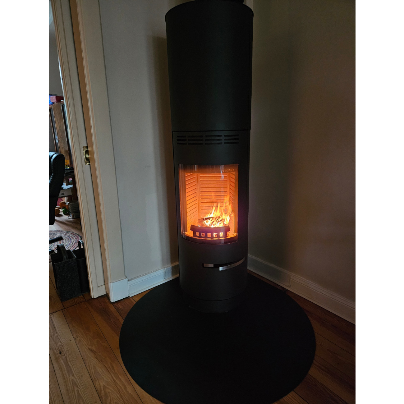 Seine runde Form in Kombination mit der gebogenen Sichtscheibe geben Ihnen einen optimalen Blick auf das Feuer. Der Brennraum ist mit hochwertigen Vermiculite ausgestattet. Optional kann der Andorra Kaminofen mit seitlichen Speichersteinen ausgestattet werden. Externe Luftzufuhr sowie formgepresster Vermiculite im Brennraum ergeben einen sehr hohen Wirkungsgrad mit über 80 Prozent. Die Panoramascheibe, und der versenkte Türgriff heben die schöne Form ab, und runden die Ideen des Gesamtbildes des Andorra Kaminöfen ab. MERKMALE: Energieeffizienzklasse: A;Nennwärmeleistung: 7 kW;Raumheizvermögen (abhängig von der Hausisolierung): 98 bis 180 m³;Korpus Farbe: Schwarz;Verwendete Materialien: Stahl;Form des Kamins: Rund;Scheibenform: Runde Scheibe; BESONDERHEITEN: Anschluss für externe Luftzufuhr/ Frischluftzufuhr; Speicherofen (die Ausstattung hierzu ist möglich); MASSE DES KAMINS Höhe: 114,7 cm;Breite: 51 cm;Tiefe: 45,5 cm;Gewicht: 102 kg; SCHEIBENMASS Höhe: 49 cm;Breite: 41 cm; TÜRMASSE Höhe: 80 cm;Breite: 59 cm; BRENNRAUMMASSE Höhe: 46 cm; Breite: 35 cm; Tiefe: 30 cm; RAUCHROHR-ANSCHLUSSDETAILS: Durchmesser: 150 mm;Position Rauchrohranschluss: Oben; VERBRENNUNGSLUFT TYP: Externe Luftzufuhr / Raumluftunabhängiger Betrieb: Ja, optional anschließbar, mit der Externen Luftzufuhr können Sie den Ofen mit Luft aus einem Nebenraum oder von außen beheizen. Dies wirkt sich positiv auf das Raumklima aus. Ermöglicht auch den Anschluss einer elektronischen Verbrennungsluft Regelung;Durchmesser Anschluss externe Luftzufuhr: 100 mm;Position Anschluss externe Luftzufuhr: Hinten oder Unten / Boden / Unterhalb;Höhe Anschluss externe Luftzufuhr: 22,9 cm;DIBt Zulassung: Nein - jedoch teilweise möglich in Kombination mit externer Luftzufuhr und einen Sicherheitsschalter mit DIBT Zulassung; BRENNSTOFFANGABEN: Zulässige Brennstoffe: Scheitholz; Holzbriketts;Max. Scheitholzlänge: 30 cm; 35 cm (Hochkant);Max. Aufgabemenge: 2,3 kg; AUSSTATTUNG: Scheibenspülung: Ja, klare Sicht auf das Feuer - Luftstrom vor der Glasscheibe, dadurch wird die Verschmutzung der Scheibe minimiert;Wärmespeicherfähigkeit: Optional mit Speicherbetonsteinen auszustatten;Doppelt verriegelte Tür: Ja, die Tür wird an zwei Punkten verriegelt und liegt somit besonders dicht an den Ofenkorpus an;Ein-Regler-Steuerung: Ja, die gesamte Luftzufuhr des Ofens wird über einen Regler einfach gesteuert;Für Dauerbetrieb geeignet (24 Std. Betrieb): Ja;Holzfach: Ja mit Tür;Ascherost und Aschekasten: Ja;Brennraum Auskleidung: Vermiculite;Automatische Verbrennungsluftregelung: Nein;Luftströme: Primärluft; Sekundärluft; SICHERHEITSABSTÄNDE ZU BRENNBAREN MATERIALIEN: Hinten: 20 cm;Seitlich: 45 cm;Vorne: 80 cm; DATEN FÜR DEN SCHORNSTEINFEGER: Bauart A1 - selbstschließende Feuerraumtür (mehrfache Belegung des Schornsteins): Ja;Bundes-Immissionsschutzverordnung (BImSchV): 1. Stufe erfüllt; 2. Stufe erfüllt;Art. 15a B-VG (Österreich): Ja;VKF-Schweiz: Ja;Wirkungsgrad (Energieeffizienz): 82,3 %;Staub: 23 mg/Nm³ bez. auf 13% O²;Kohlenmonoxid (CO): 1000 mg/Nm³ bez. auf 13% O²;Abgastemperatur: 315°C;Abgasmassenstrom: 6,9 g/s;Mindestförderdruck: 12 Pa;CE Zeichen: Ja; Hinweis: Bitte sprechen Sie vor dem Kauf mit Ihrem zuständigen Schornsteinfegermeister. Lassen Sie Ihren Schornstein vor dem Einbau der Feuerstelle auf Verwendbarkeit prüfen. Beachten Sie außerdem die Bedienungsanleitungen und die Sicherheitsabstände.; LIEFERDETAILS: Lieferkosten: Kostenlos Bordsteinkante - Deutschlandweit, außer Inseln;Lieferinfo: Die Lieferung erfolgt per Spedition, Bordsteinkante;Dekorationsartikel und Rauchrohre gehören nicht zum Leistungsumfang;Lieferung zum Aufstellort mit einem 2-Mann-Handling Service: Möglich gegen Aufpreis - sprechen Sie uns hierzu gerne an; OPTIONAL: Seitliche Speichersteine - 4 Stück. Die Wärme wird noch über mehrere Stunden abgegeben, nachdem das Feuer längst erloschen ist. Dies ist möglich durch ein Speziellen Speicherbeton der wie ein Akku funktioniert, die Speichersteine Laden sich während der Kamin in Betrieb ist auf, und geben die Wärme nach und nach ab. Die Speichersteine werden separat geliefert und können leicht selbst eingebaut werden.