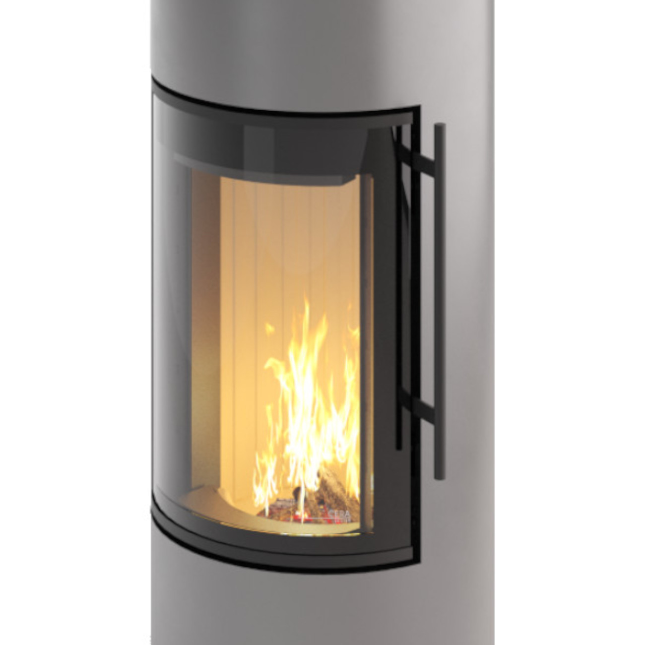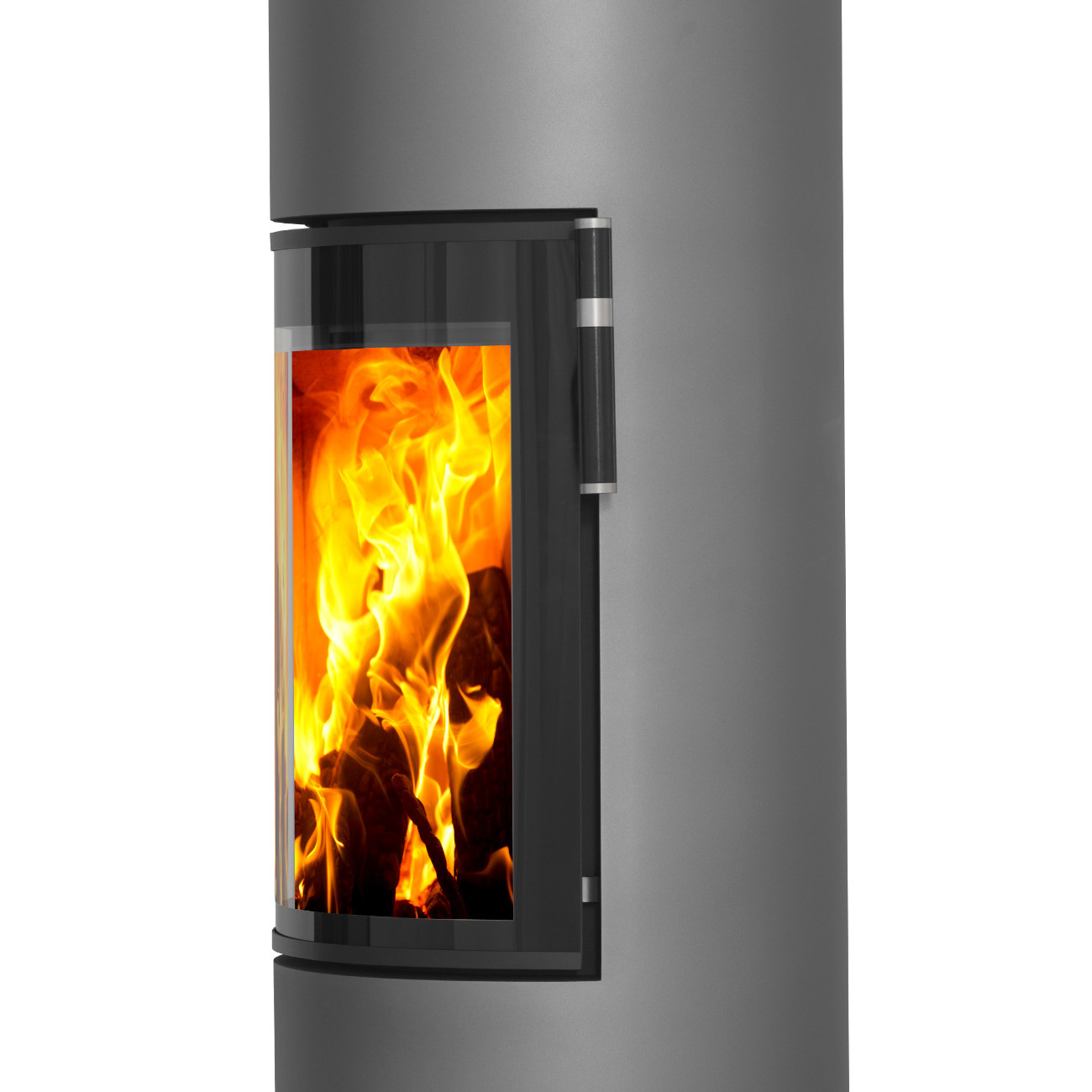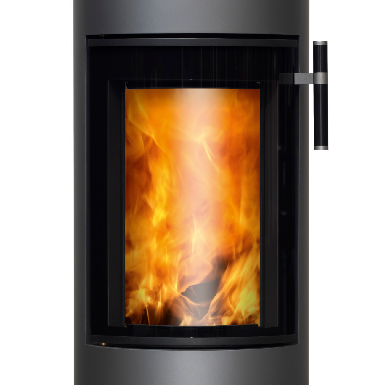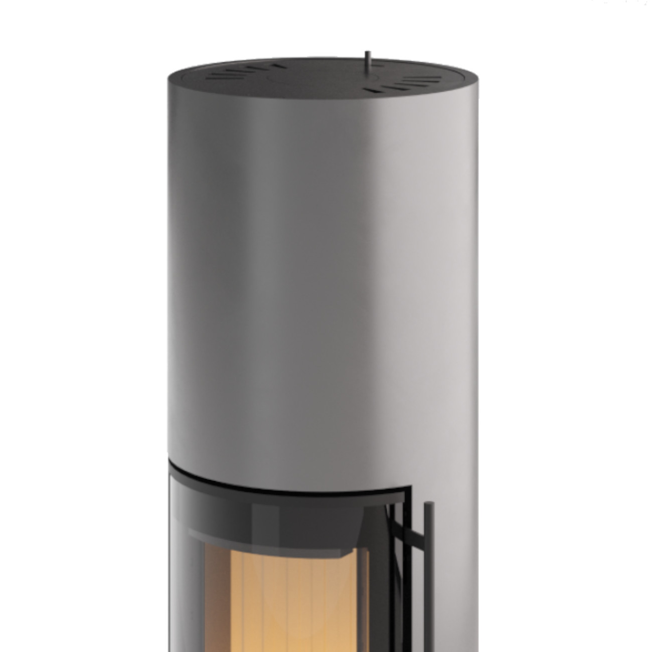 Der Solitherm Speicher-Kaminofen in Grau verbindet grazile Eleganz mit hoher Funktionalität. Sein schlankes Design mit einem Durchmesser von nur 47 cm macht ihn ideal für kleine Räume – ohne Kompromisse in Sachen Wärmeleistung.