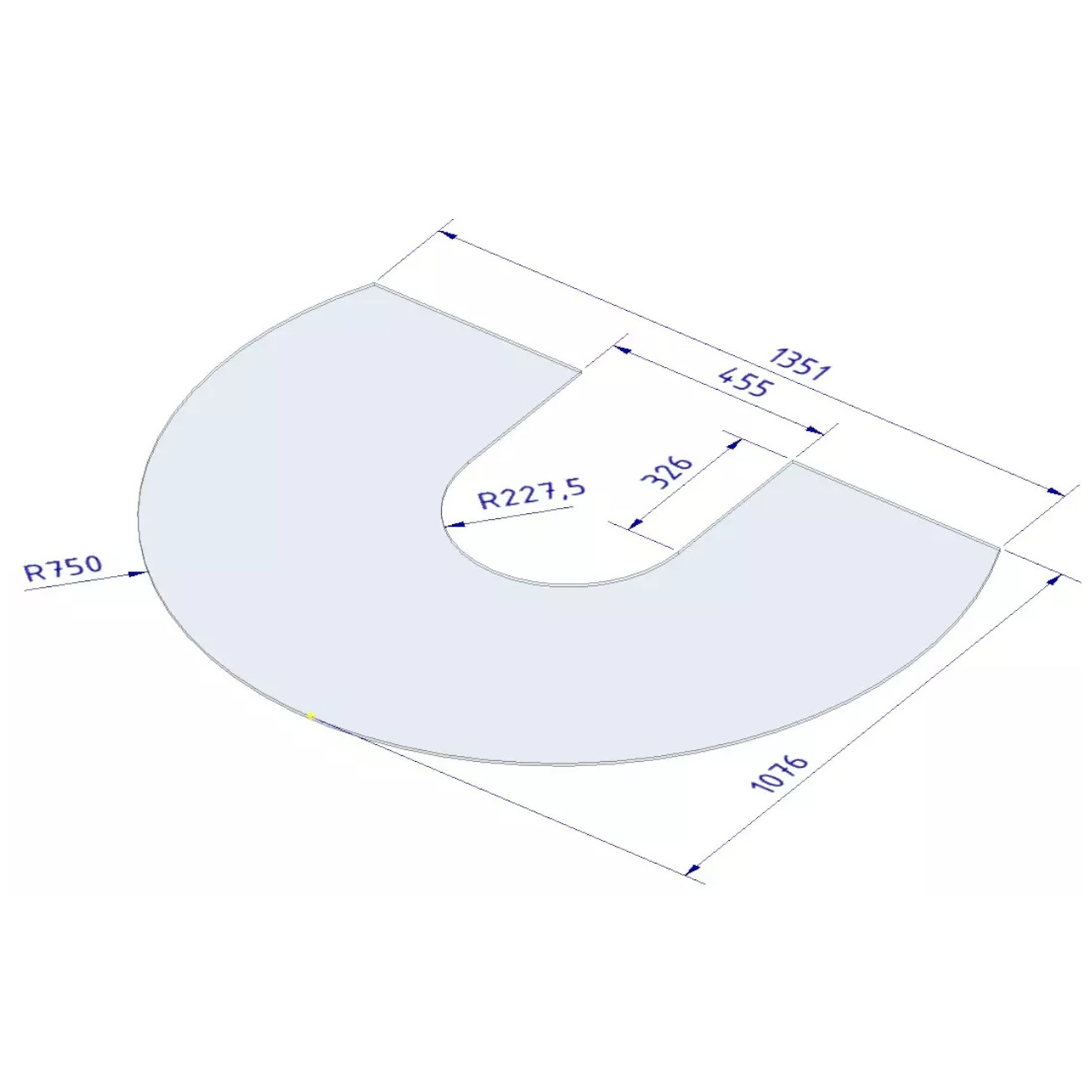 - Glasvorlegeplatte für Drehfunktion: Bodenschutz für brennbare Fußböden. Die Glasvorlegeplatte kann bei Nichtbenutzung oder zur Reinigung einfach weggenommen werden. Maße: 150 x 107,6 cm