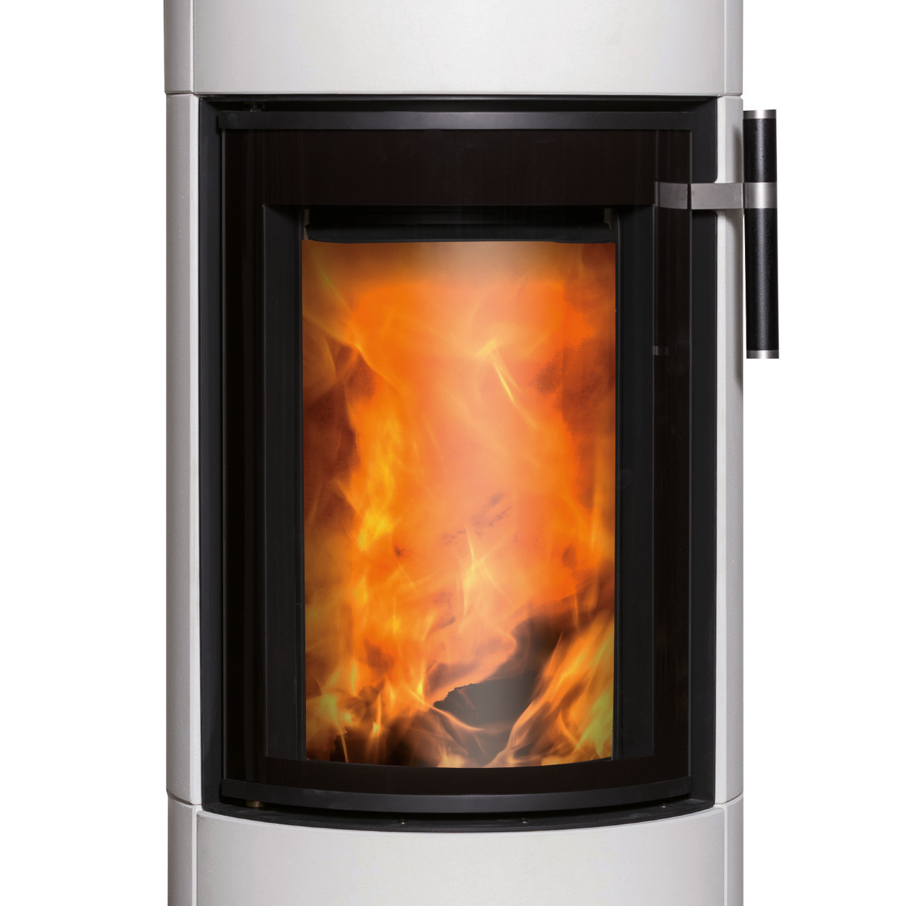 - Mit ca. 8 kg Holz bis zu 11 Std. Wärmeabgabe dank serienmäßig integriertem Schamotte-Akku