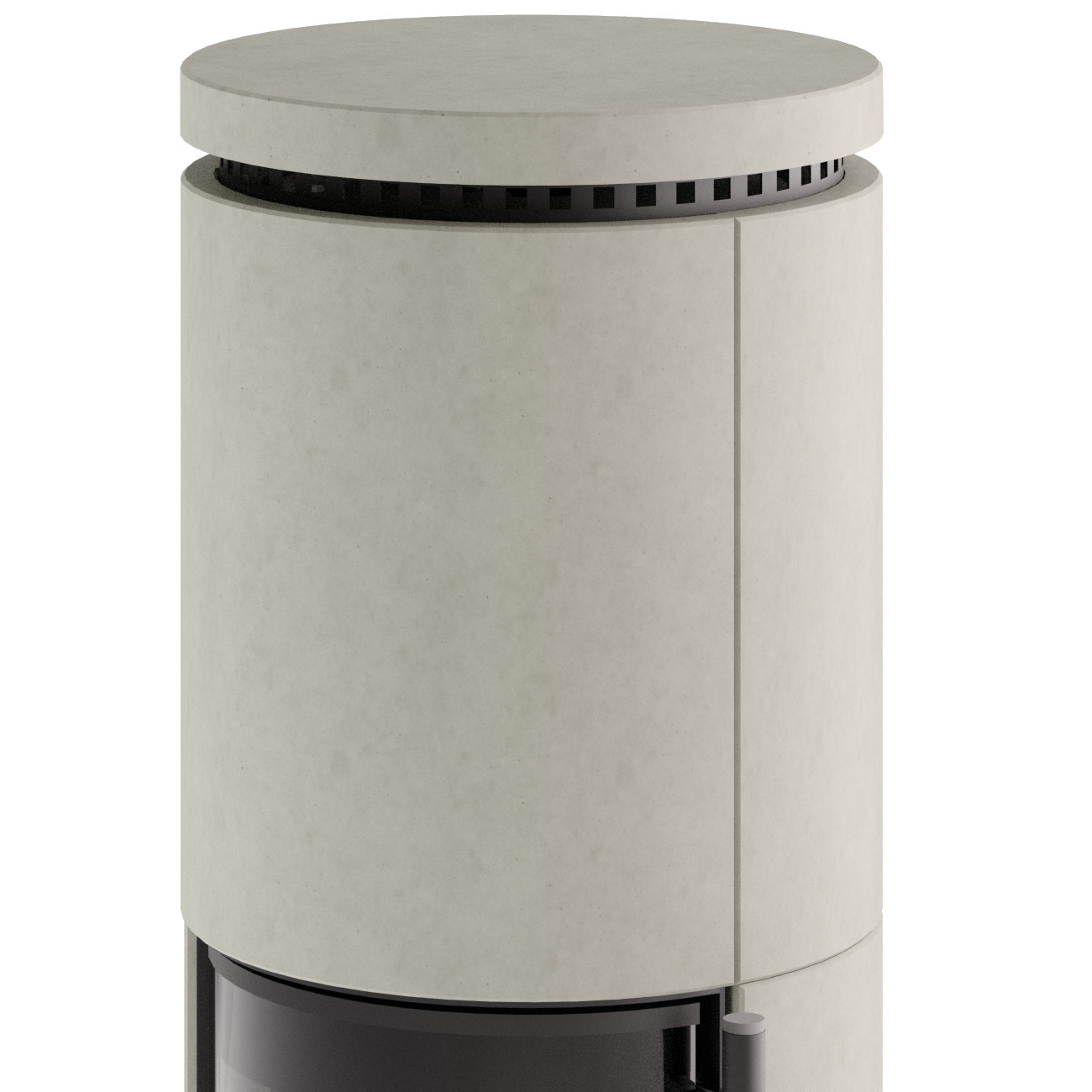 Die Oberfläche in Rohbeton-Optik zeichnet sich durch großformatige, polierte Beton-Elemente aus, die dem Ofen eine moderne, puristische Ausstrahlung verleihen. Der Farbton bewegt sich zwischen hellem und mittlerem Grau mit lebendiger Struktur und wirkt je nach Lichteinfall kühl oder leicht warm – ideal für zeitgemäße Wohnkonzepte.