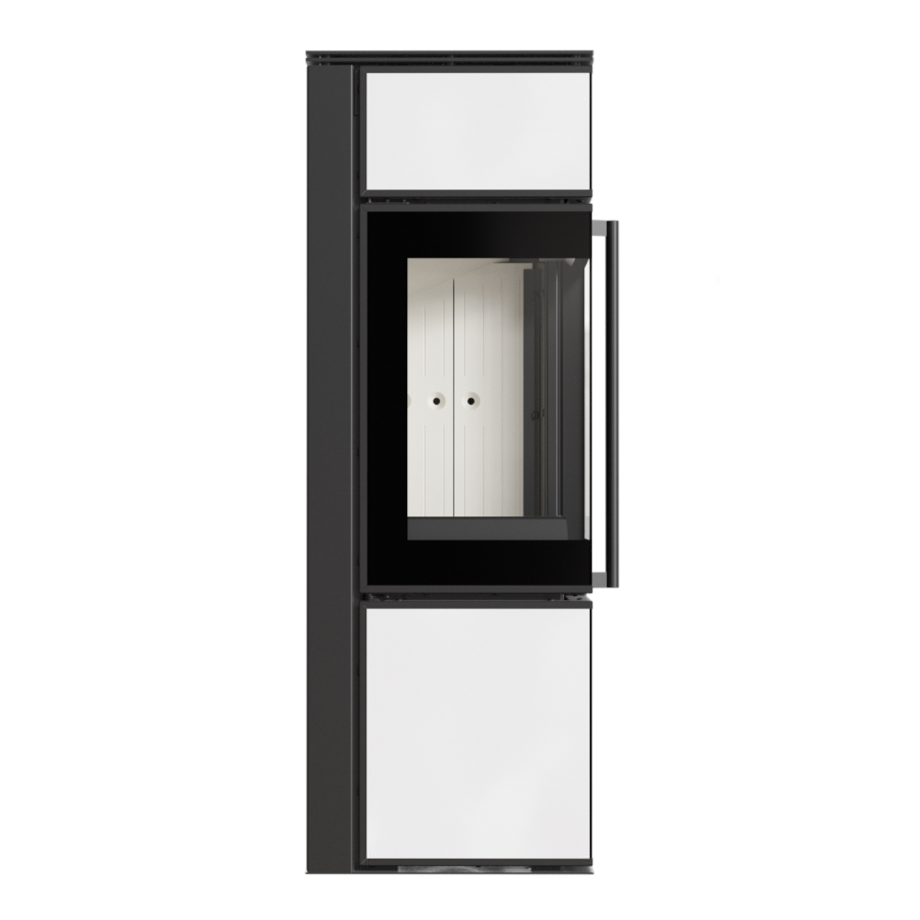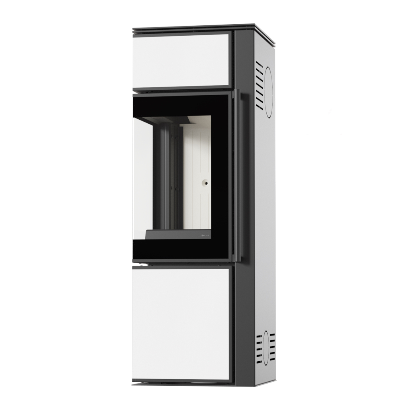 - Weiße Glaspaneele auf der Außenverkleidung – verleihen dem Ofen eine edle, minimalistische Ästhetik 🖤
