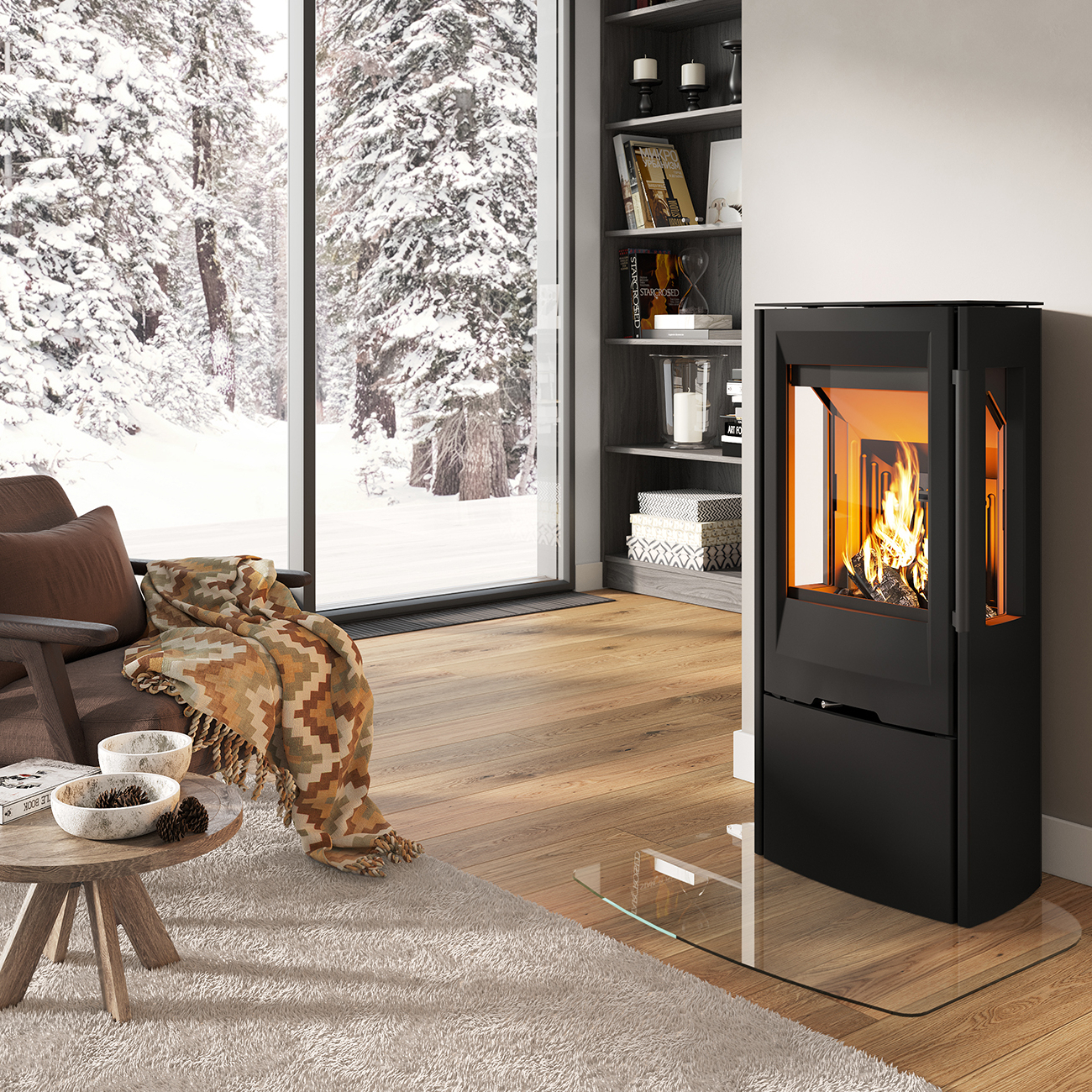 - Formgeschnittene Vorlege-Glasplatte – Eleganter Schutz für Ihren Boden! Die passgenaue Glasplatte verleiht Ihrem Kaminofen eine leichte und stilvolle Optik. Sie kann bei Bedarf – etwa zur Reinigung oder außerhalb der Heizsaison – mühelos entfernt werden. Dafür müssen die verstellbaren Füße des Ofens zuvor um mindestens 7 mm herausgedreht werden. Die Bodenplatte wird ein Stück unter den Kaminofen geschoben und um ihn herumgelegt, während der Ofen direkt auf dem Fußboden steht.